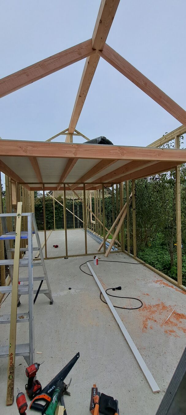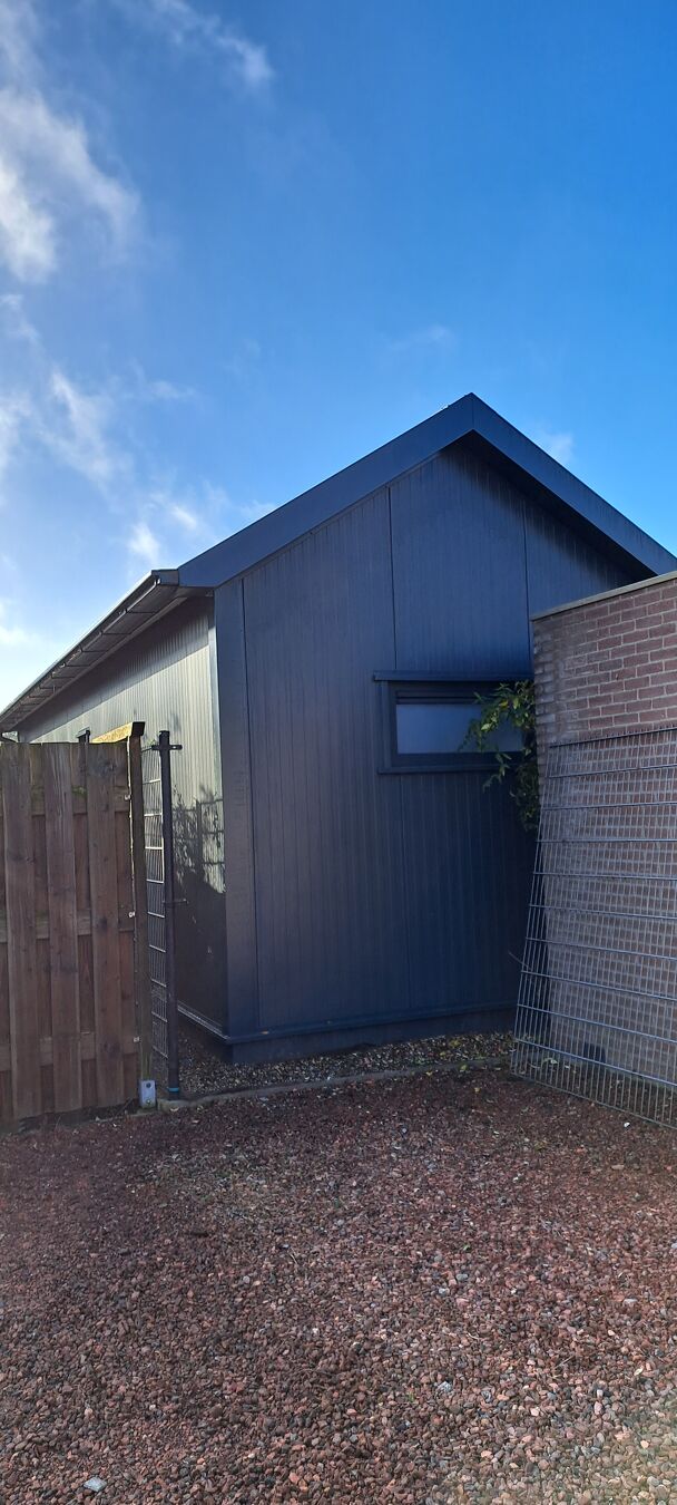 De sandwichpanelen zorgen niet alleen voor een moderne uitstraling, maar ook voor hoge isolatiewaarden. Dit betekent minder energieverlies en een aangenaam binnenklimaat — ideaal voor gebruik als werkplaats, opslagruimte of hobbyruimte.