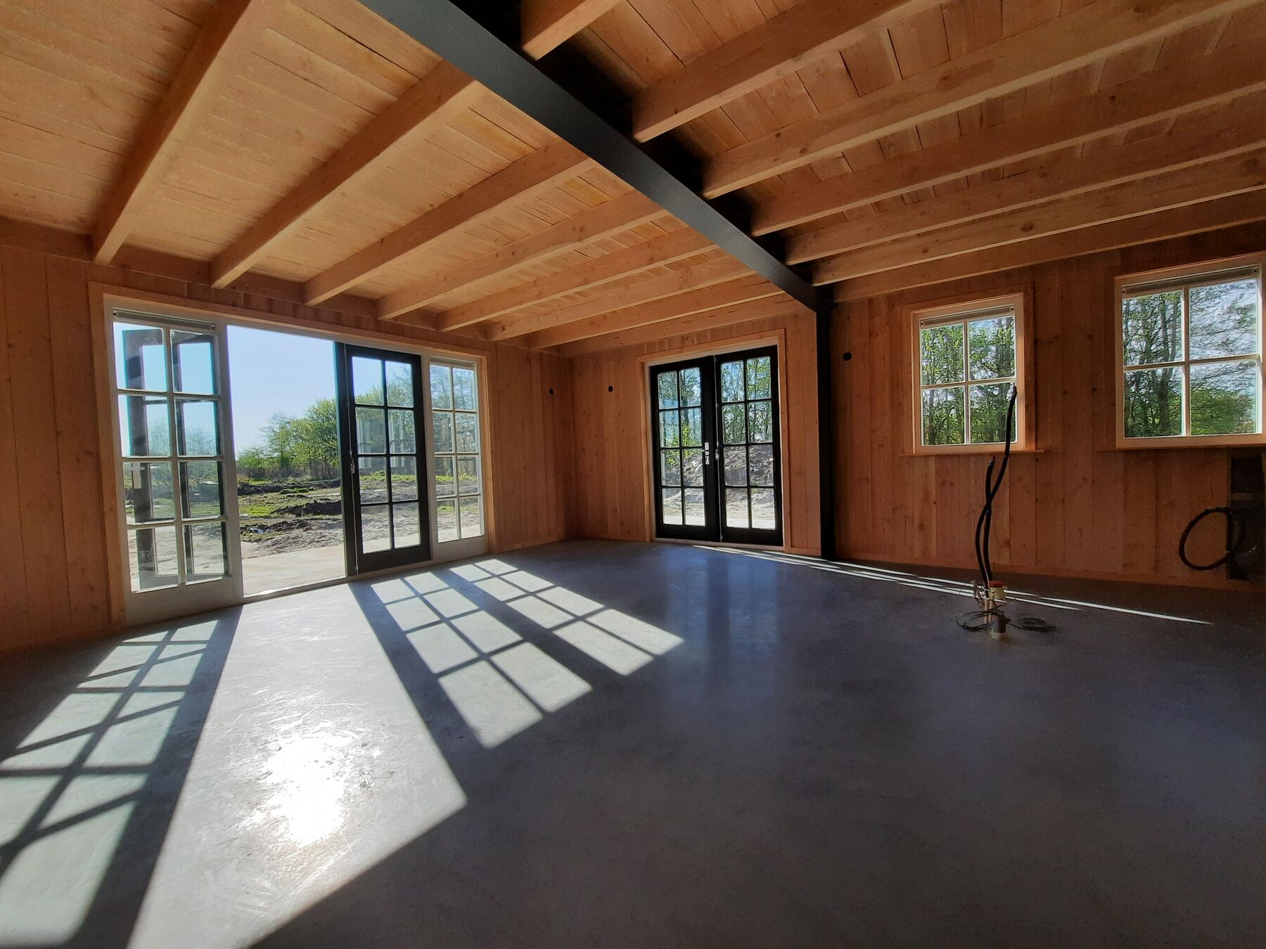 De schuur is volledig uitgevoerd in Douglas hout, bekend om zijn duurzaamheid, sterkte en natuurlijke uitstraling. Douglas hout vergrijst mooi en is onderhoudsarm, waardoor het jarenlang meegaat. Dit maakt het de perfecte keuze voor een grote, robuuste schuur met een tijdloze uitstraling.